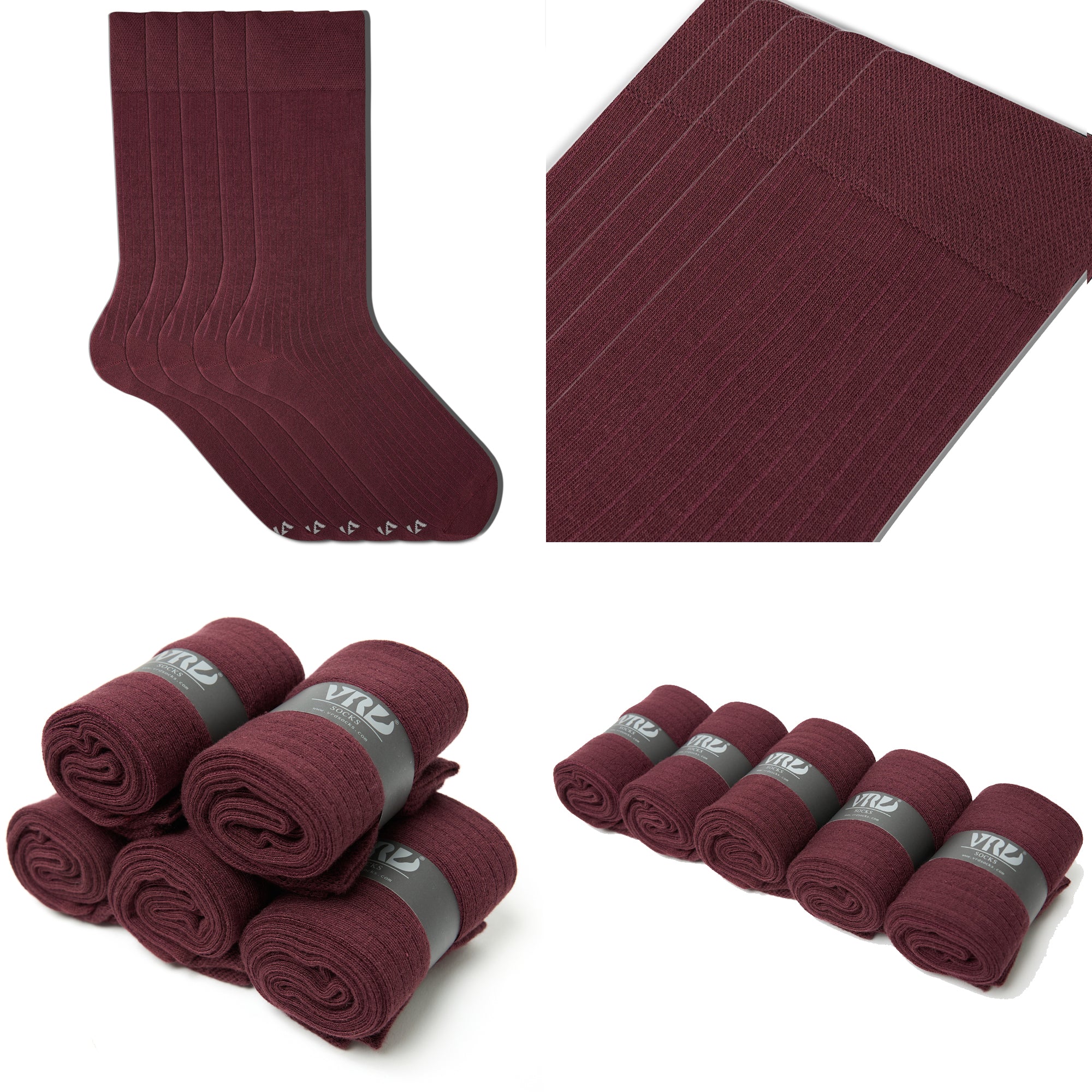 Men's Bamboo Dress Socks • Ribbed Pack of 1/3/5 Pairs • Burgundy
